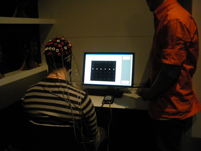 Das hier sieht ganz erschreckend aus --- Tatsache ist, dass der "Mitspieler, Kunstgenießer, Ausstellungsbesucher" hier unter Assistenz seine Augen untersuchen kann... ist also ein Aspekt auf die autonome Gesundheitskontrolle des "MODERNEN MENSCHEN" .